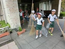 最後はやしお苑の外回りのお掃除をします。「自分たちでできること」をすることにしました。