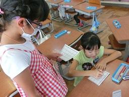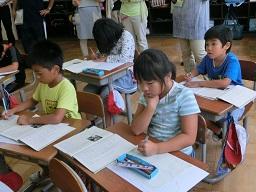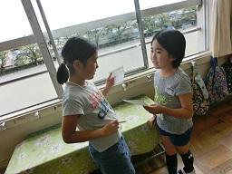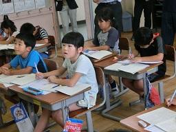 子供たちも、自分のプリントに書いていきます。今度は隣の人同士で話します。学校ではペア学習と呼んでいます。