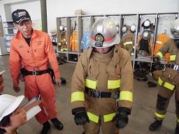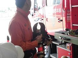 今度は出動するときに着替える様子を見せてくれました。その様子を3回の動画に分けて見ました。上の青い文字をクリックすると動画が見られます。