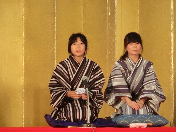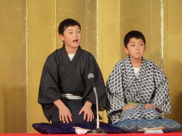 児童も体験活動として落語を披露しました。5年生の男子児童は「寿限無」を、6年生の女子児童は「平林」のお題で行いました。