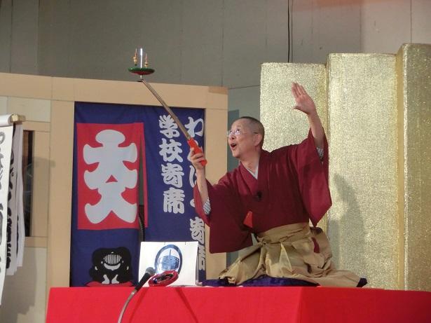 落語のほかにも「江戸曲独楽」の独楽回しの芸も披露されました。さすがに本物の芸人さんの芸は一流で、子供たちはその世界にすっかり見入ってしまいました。