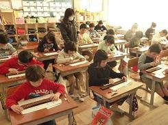 2月28日(水)から3月2日(金)までの3日間、珠算ボランティアのご協力を得て、3年生がそろばんの学習をします。