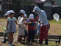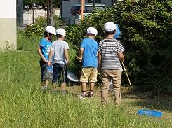 9月14日(木)の1校時に、1年生が虫さがしでたんぽぽ公園に出かけました。天気は良かったのですが、前夜に雨が降った後なのでぬかるみになっている所もあり、少々活動には不向きな状態でしたが、児童達は元気に学習をしてきました。