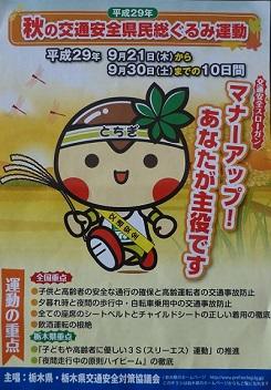 本日、9月21日(木)から30日(土)までの10日間、県民一人ひとりに交通安全意識の浸透を図り、交通ルールの遵守と交通マナーの実践を習慣付けて、交通事故防止の徹底を図ることを目的として、「秋の交通安全県民総ぐるみ運動」が実施されます。この期間中、栃木県は、