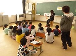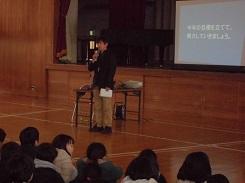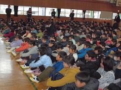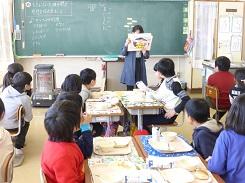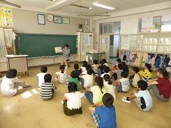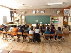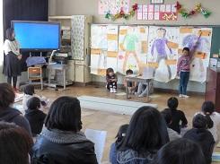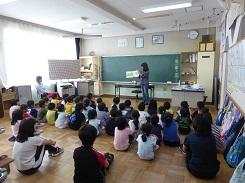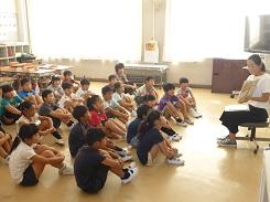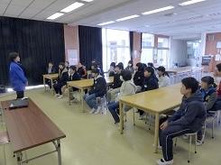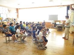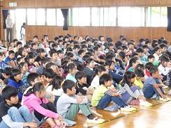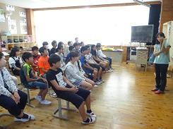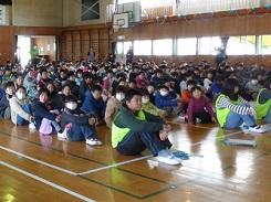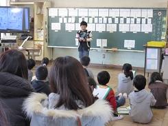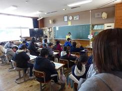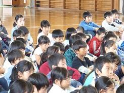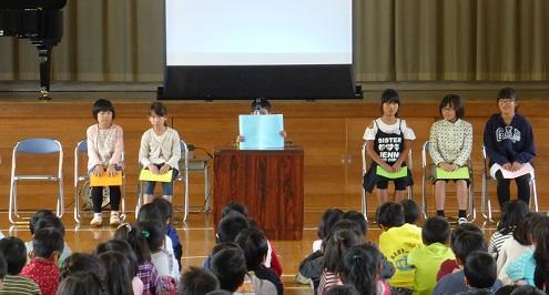 毎年行っているということですが、低学年だけでなく高学年でも集中して話を聞いていました。中には、身を傾けて聞いていた児童もいました。また、紙芝居を読んだ児童も、とても上手でした。健康委員の児童に話を聞くと、今日のために練習を重ねてきたとの事です。
