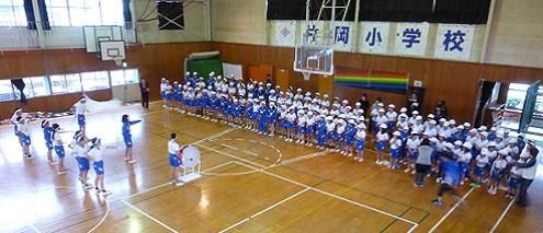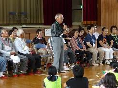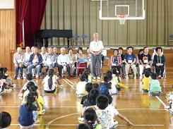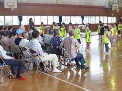 全員がそろうまで2年生の合唱を聴いていただき、その後、児童の司会による開会行事を行いました。お手伝いをくださる方から「私もこの学校を卒業しました。」、「子どもがこの学校を卒業して、孫もこの学校に通っています。」などの自己紹介をいただき、片岡地区の小学校としての伝統と歴史を感じた開会行事になりました。また、「毎日の散歩の時間が小学生の登校時間と同じです。」という方や見守り隊として活動してくださっている方も昔遊びに協力くださっているので、多くの方が小学校に協力してくださっていうことを児童も感じたことと思います。