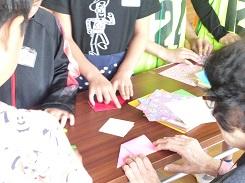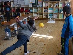 児童は、お手玉、竹馬、お手玉、めんこなど、全部で12種類の遊びを体験しました。福笑いでおかしな顔になっていくのをニコニコしながら見守る姿や、紙風船をお互いが打ち合う楽しそうな姿などがたくさんありました。また、上手にできなかった遊びの要領をつかんで上手にできるようになってきた得意気な顔や、折り紙を一つ一つ教わりながら真剣に折っている姿は微笑ましいものです。充実した昔遊び体験ができました。