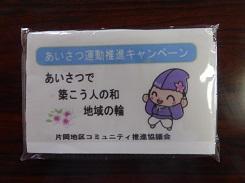 登校時に片岡駅前を通過する登校班の中から代表で2つの班が、改札口前と西口の連絡橋階段でポケットテッィシュを手渡しました。このキャンペーンは、片岡地区コミュニティー推進協議会のほかに、矢板市教育委員会生涯学習課、矢板警察署駐在所の方々や片岡中学校の生徒さん達と一緒の活動でした。