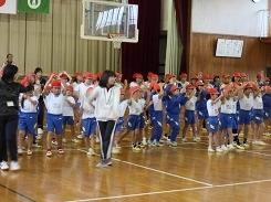 10月16日の3校時は、1年生・2年生が運動会で演技するダンス「わか和歌ほんわかともなりくん」の練習を体育館で行いました。