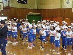 体育館での練習なので校庭とは隊形等で少々違いがありますが、初めての全体練習としては上手にできたと思います。赤組・白組がそれぞれ声を合わせたり、動きをそろえたりしながら、運動会までにまとまりを作っていくことになります。昨年度は赤組が優勝だったそうです。今年はどちらの組が勝利をつかめるでしょうか。