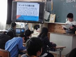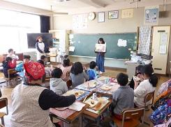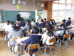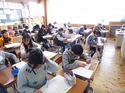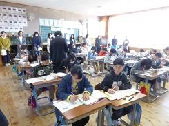 授業参観では、1年生と2年生は生活科の発表で、それぞれが次の学年に進級する気持ちや抱負についての発表を行いました。3年生は国語で「音読かるた」、4年生は「1/2成人式」を行いました。5年生は国語の「わらぐつの中の神様」を、6年生は国語の「今、私は、ぼくは」でスピーチを行う学習でした。3組と4組は合同で1年間で成長したことについての発表をしました。