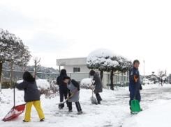 本日の5校時は、1年生から3年生までは授業をせずに下校、4年生と5年生は卒業式の準備、6年生は明日の卒業に向けて学級活動を行いました。5校時の作業等で4年生と6年生は下校となりますが、5年生は卒業式会場の仕上げを6校時まで行ってから下校です。昇降口、玄関、6年教室など、心を込めて整えました。