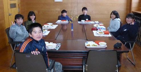 はじめのうちは緊張感のためか、妙なクスクスとした笑いを伴った会食でしたが、時間がたつにつれて、中学校で入部する部活動の話や、小さい時の思い出話などが話題になりました。本日聞いた思い出話から、楽しい小学校生活だった様子を感じることが出来ました。中学校でもいい思い出が出来るよう願っています。