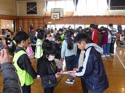 ウォークラリーのあとは体育館にもどり、成績発表がありました。その後、在校生から6年生へ手紙をプレゼントをして、6年生がお礼として八木節の演奏をしてくれました。リコーダーや鍵盤ハーモニカ、太鼓等の楽器を使い、演奏だけでなく振り付けがあり、見ていても楽しい演奏でした。
