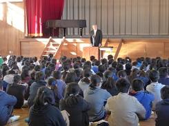 終業式での校長の話は、目標を立てて、努力する方法を具体的に考え、実行を積み重ねていくことが大切であるという、「自分を伸ばそう」という内容でした。