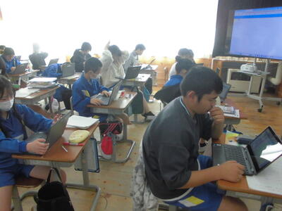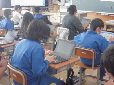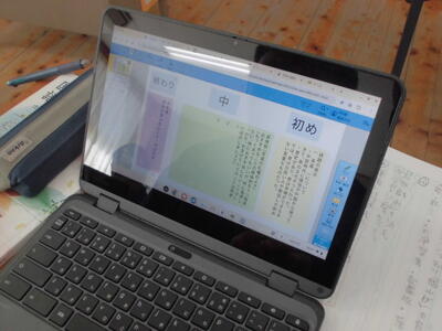 6年生は、国語科「発見、日本の文化のみりょく」で、日本文化に関する本を読んで興味をもったものについて、そのよさを伝える文章を書く活動をしています。今日は、文章の構成を考えながらまとめていく活動でした。タブレットを活用し、目的や意図に応じて、効果的に伝えられているかという視点で、書く活動に取り組んでいました。