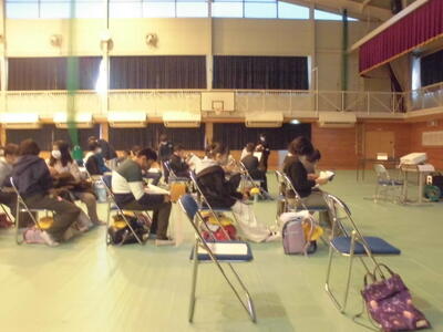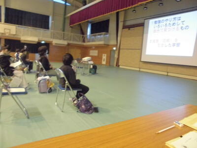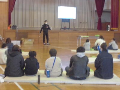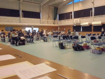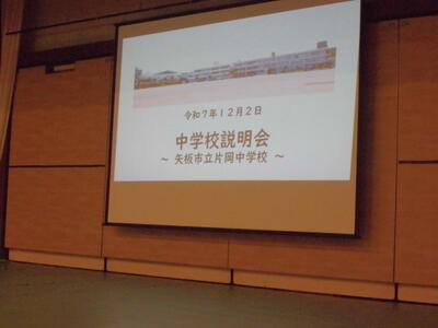 6年生は、片岡中学校で実施された中学校説明会に参加しました。授業参観後、体育館にて学校概要説明、生徒会による学校紹介、中学校の生活と入学までの準備物の順で説明が行われました。子どもたちは少し緊張した様子で、中学校の先生方の説明を聞いていました。