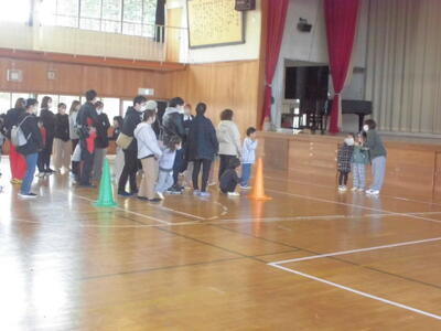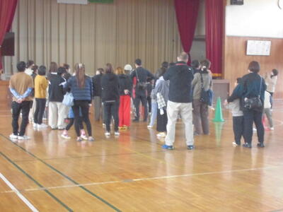 1年生は、5校時目に体育館で親子学び合い活動を行いました。子どもたちが作成したクイズに親子で考え答えていくといった形式で、楽しいひと時を過ごしました。