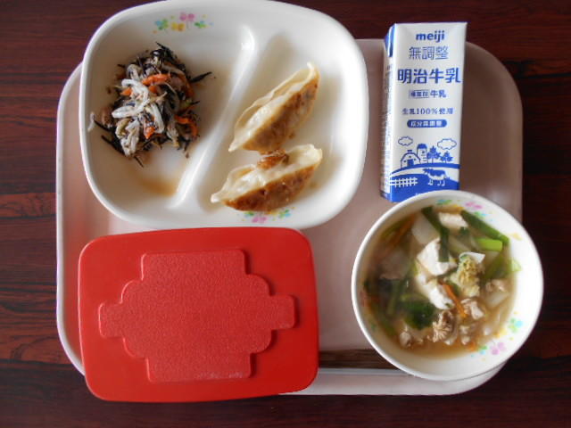 焼き餃子、ひじきとツナのナムル、豆腐チゲスープ等です。
