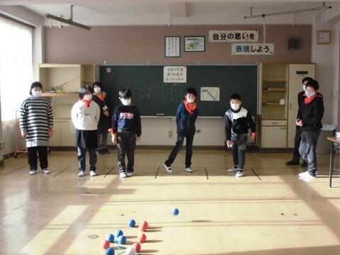 1時間目に、3・4・5組でボッチャ大会を行いました。