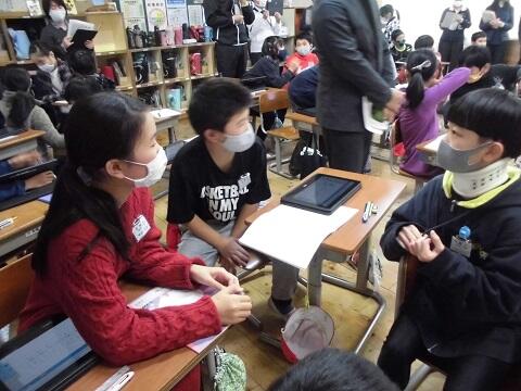 授業では矢板市から貸与されたタブレットを活用して考えたり、友達と自分の意見を比べることで互いの考えをより一層深めたりしました。子供たちは自分の考えをタブレットに書き込んで友達に説明する際に視覚的に分かりやすく伝えることができました。