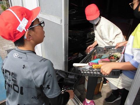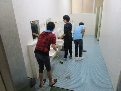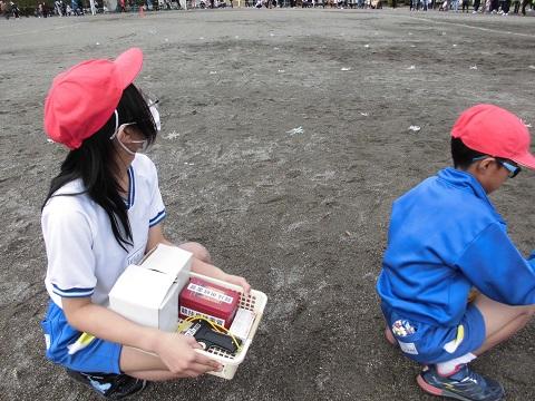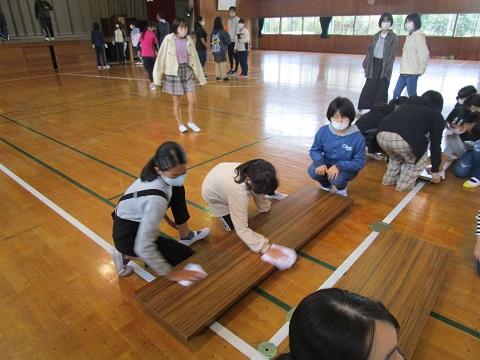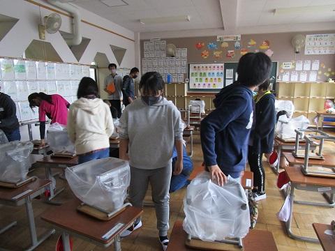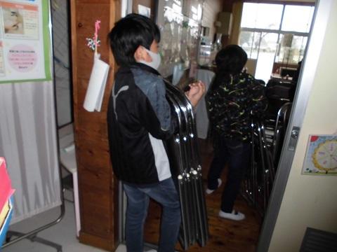 また、今日は雨天のため、体育館や校内にて運動会当日に使用する机や椅子の準備をしたり、トイレの掃除をしたりしました。5・6年生は、明日の運動会のためによく働きました。