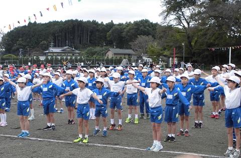 片岡小学校全校児童で築き上げる運動会、いよいよ明日が本番です。