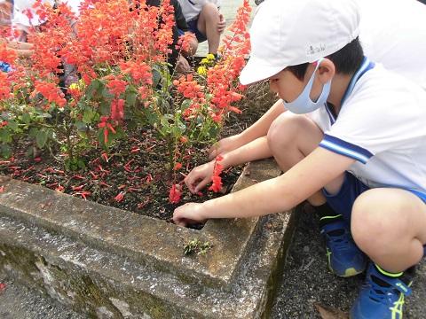 春に植えたベゴニアやサルビアなどを取り除くとともに、雑草の除草を行いました。