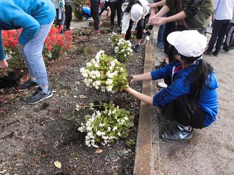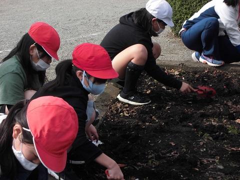 13時から「みどりの活動」で学級花壇の整備を行いました。