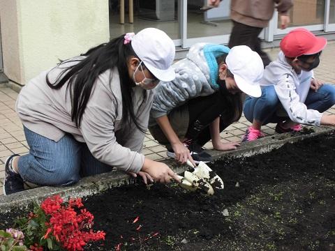 まだ蕾の苗もありますが、子供たちがこれから毎日世話をして花壇一面に花が咲き誇るのが楽しみです。