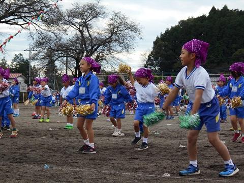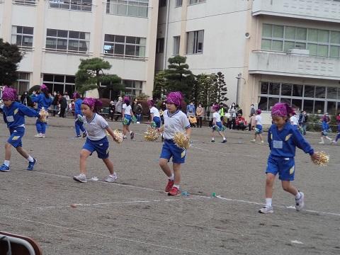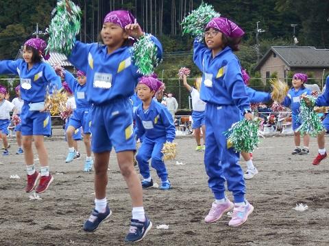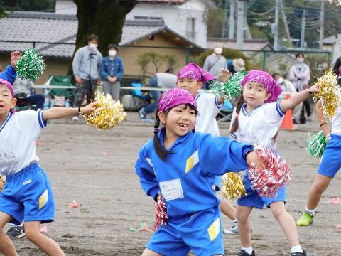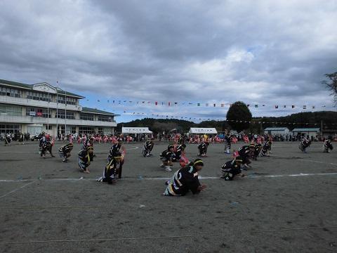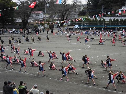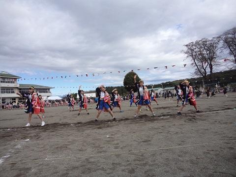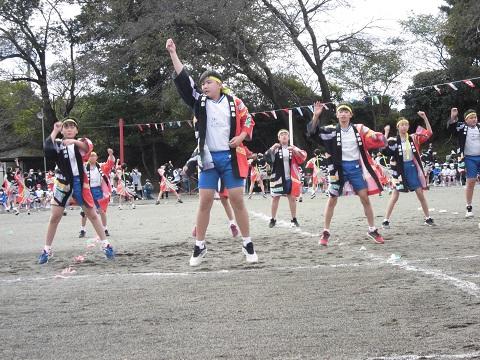 1~3年生による『わか和歌ほんわりともなりくん』です。子供たちは笑顔を浮かべながら、力いっぱい元気に踊ることができました。