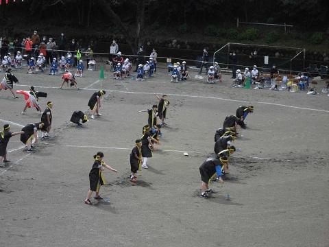 前日の雨で校庭の事前準備が行えませんでしたが、早朝からのPTAの皆様のご協力により予定時刻には開始することができました。皆様のご協力に感謝いたします。