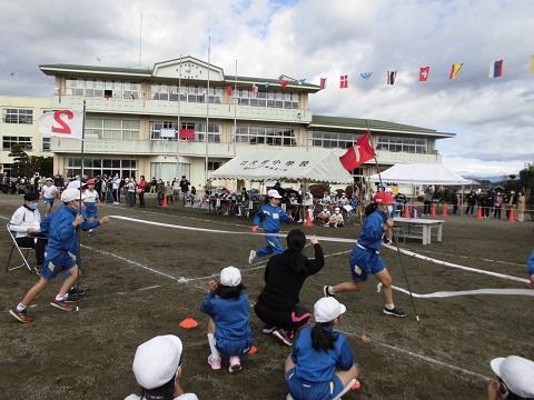 各学年の代表たちがバトンを繋いで、最後の最後まで勝敗の分からない接戦を繰り広げました。