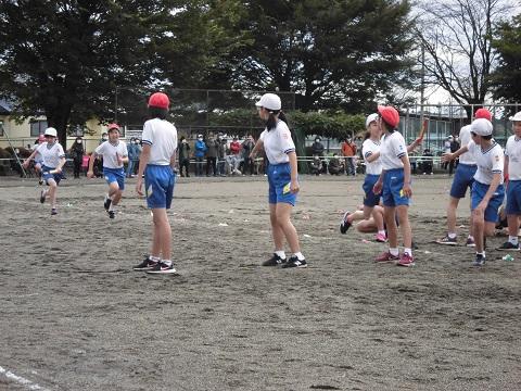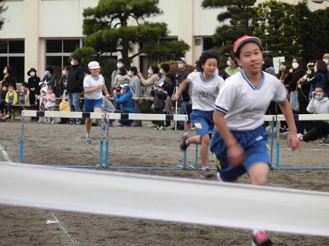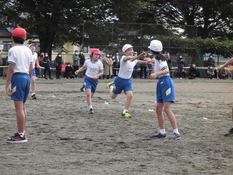 新型コロナ感染症対策のため、リレーの前後には手指の消毒を行い、待機中の児童はマスクを着用しての競技となりました。