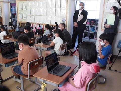 多くの児童が参加し、オンライン授業のときの出席の取り方や発言のしかたについて確認しました。
