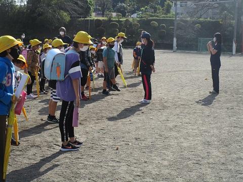 本日は一斉下校で、子供たちは交通ルールを守って1列で下校することができました。水曜日まで秋休みです。安全に気を付けて過ごしましょう。