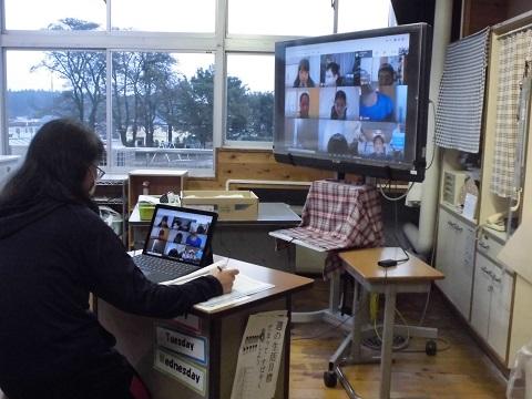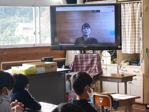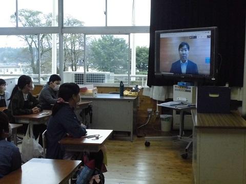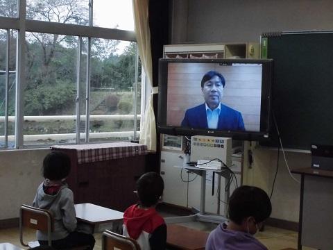 新たに学習支援員が本校に着任し、朝の活動の時間にテレビ配信で着任のあいさつをしました。