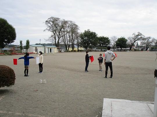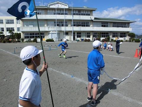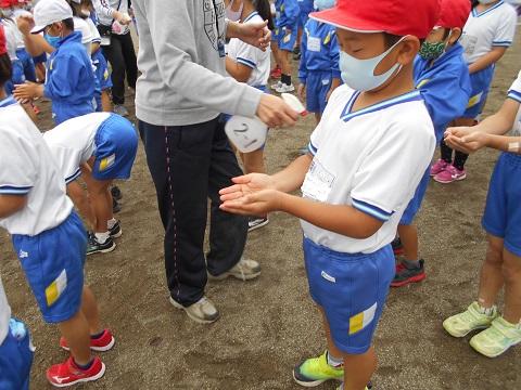 新型コロナ感染症対策のため、競技前と競技後の手洗いや消毒、待機中の児童はマスクを着用するなどして練習しました。