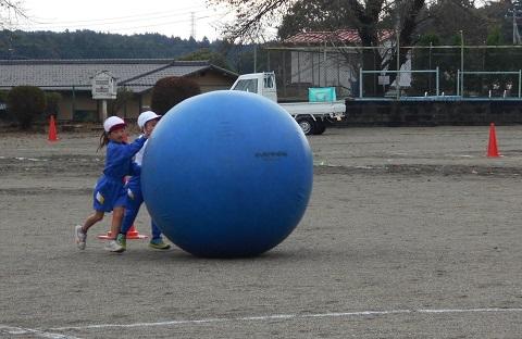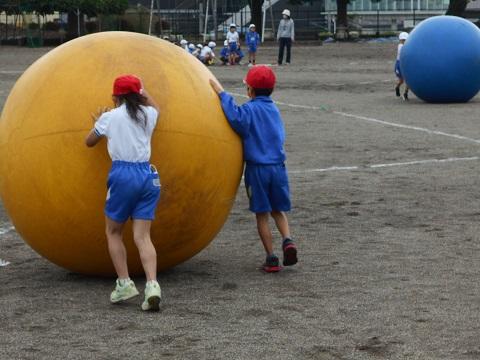 2時間目に1年生と2年生が合同で「大玉ころりん」の練習を行いました。
