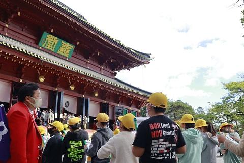 なお、境内の見学中はマスクを着用しておりますが、記念撮影等の際にはマスクを外しています。