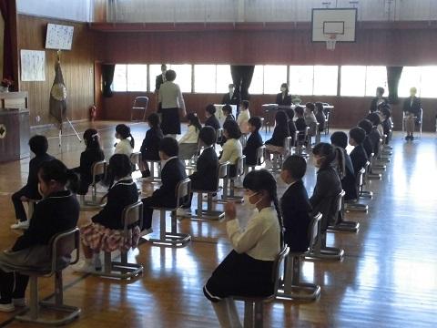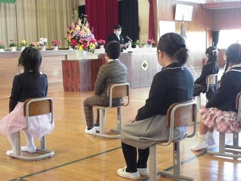 1年生は、いすにきちんと座り、担任から名前を呼ばれると元気な声で、「はい!」と返事をし、すばらしい態度で式に臨むことができました。