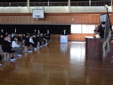 1年生は、いすにきちんと座り、担任から名前を呼ばれると元気な声で、「はい!」と返事をし、すばらしい態度で式に臨むことができました。