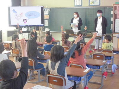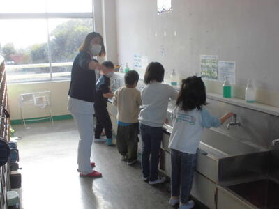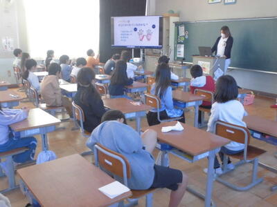 1年生は2校時目に、2年生は3校時目に手洗い教室を実施しました。講師に国際医療福祉大学塩谷病院の方々をお呼びして、実施しました。感染症が流行している今、まさにタイムリーな指導となりました。手をきれいに洗うためにはどのように洗えばよいのか、わかりやすくご指導いただきました。