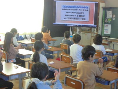 なかよし班活動の様子です。上級生が下級生の面倒を見ながら、楽しく活動しました。