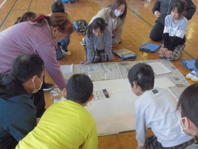 5年生は、矢板市生活環境課の方を講師にお呼びして、HUG(避難所運営ゲーム)を実施しました。避難してくる様々な人々の情報が書かれたカードを、避難所の平面図に配置しながら、避難所で起こる様々な出来事に対応していくことで、避難所運営の疑似体験と学びを深めていきます。親子で考えながら、防災に対する意識を高めるだけでなく、予測困難な時代を生き抜く力を養うために貴重な体験となりました。