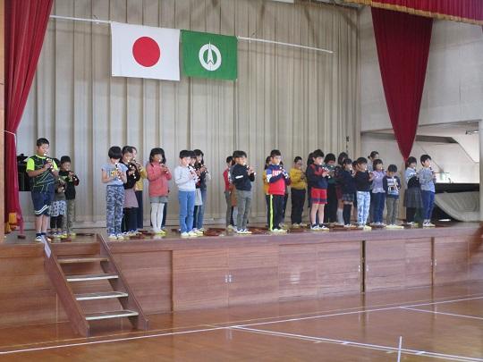 6年生が、「世界の約束」を笛で演奏、「明日を信じて」を合唱で発表しました。