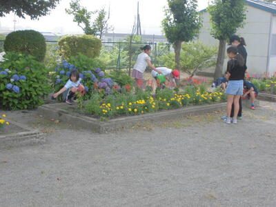 朝、校庭にある花壇を見ると、子どもたちが進んで水やりと除草を行っていました。片岡小には、やさしい心の持ち主がたくさんいます。花壇の整備をありがとうございます。