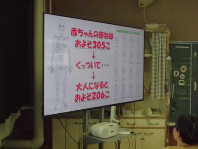 4年生は、6校時目に食に関する指導を行いました。講師は、本校の栄養教諭の高野が行いました。じょうぶな体を作るには、バランスの良い食事は必要不可欠です。本時では、「骨」をテーマに指導を行いました。