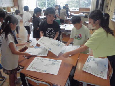 4年生は、国語科で新聞づくりをしました。グループごとに構成を考え、取材をし、丁寧に新聞づくりに取り組みました。子どもたちは自分たちで作った新聞を見て、感嘆の声を上げていました。すばらしい新聞ができました。