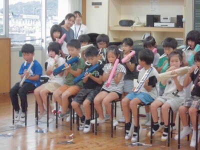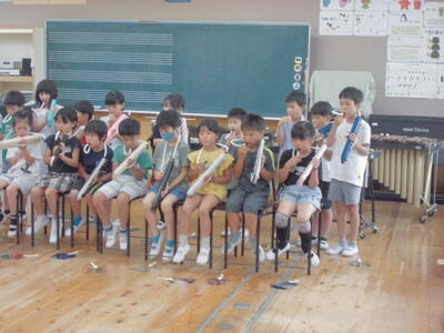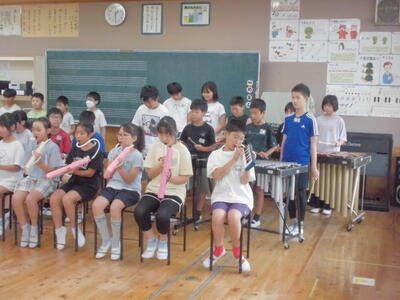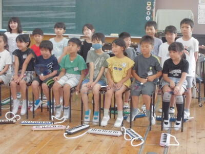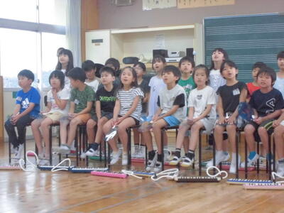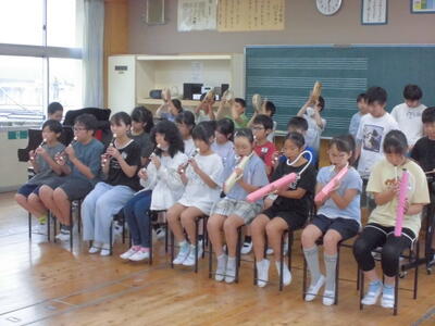 本日、発表集会を行いました。発表する学年は、2年生と5年生でした。授業で学習した内容を発表します。2年生は、音楽の授業で学習した歌と鍵盤ハーモニカの演奏を行いました。5年生は、国語で学習した古文の暗唱と音楽で学習した合奏を行いました。両学年とも、とても上手に発表することができました。さすが、片岡小学校の児童です。